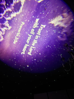 ⭐️⭐️⭐️⭐️⭐️ "My son cannot sleep without it now! Every night, my son picks a disc, we turn the projector on and his room looks magical. It helps him calm down. He tells me he feels safe seeing Gods words, It’s just a sweet little routine we do before bedtime." - Melanie S.