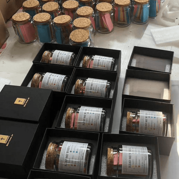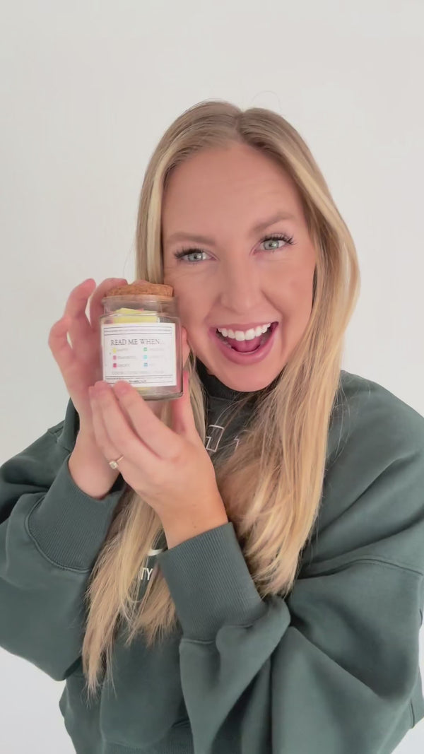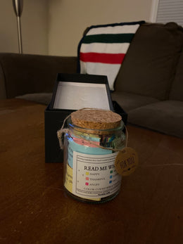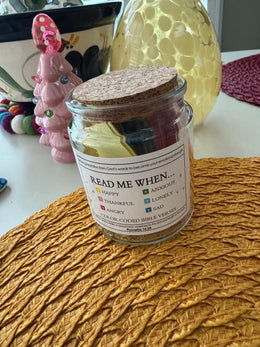 These little jars are packaged beautifully in a nice box. I just read a few of the paper strips & I think they are so appropriate for those happy days & those sad days. I got 3 for my granddaughters. I think I’ll save to put in their Christmas stockings. I know they’ll love them as much as I do. Thanks so much,Karen Finney
